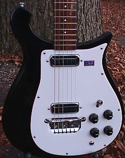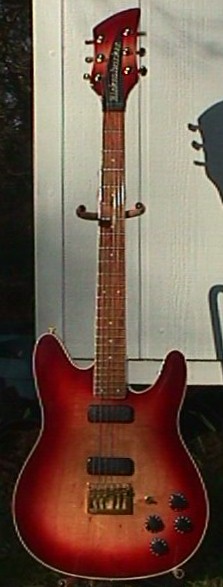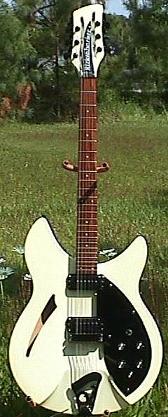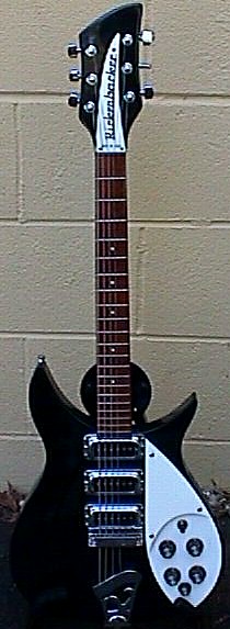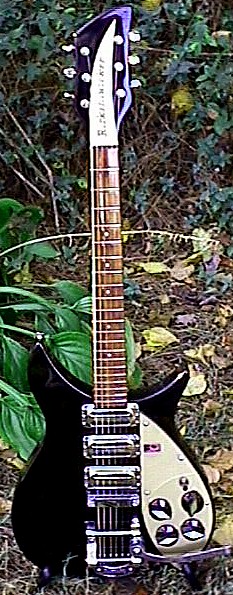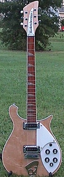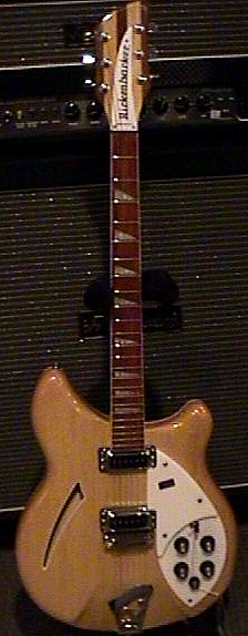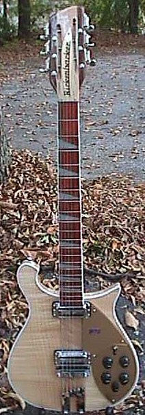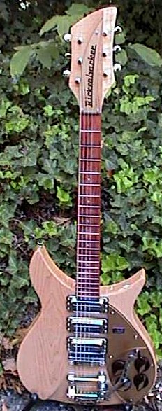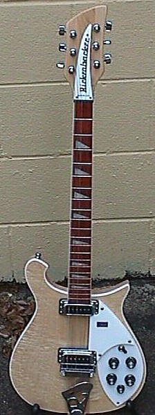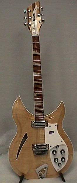 ![]() | 660 FG It's the latest model from Rickenbacker! Charactered maple body, checked binding, vintage pickups, wide neck, knobs, gold pickguard and nameplate, trapeze tailpiece. SOLD thanks DC! |