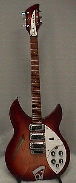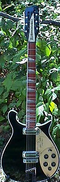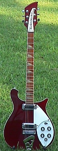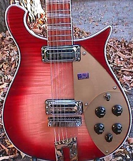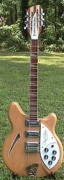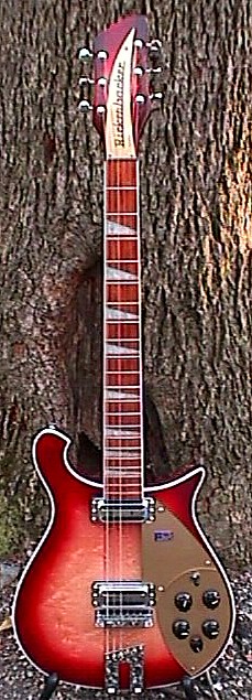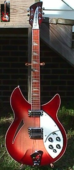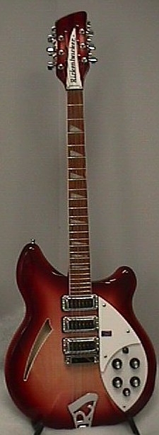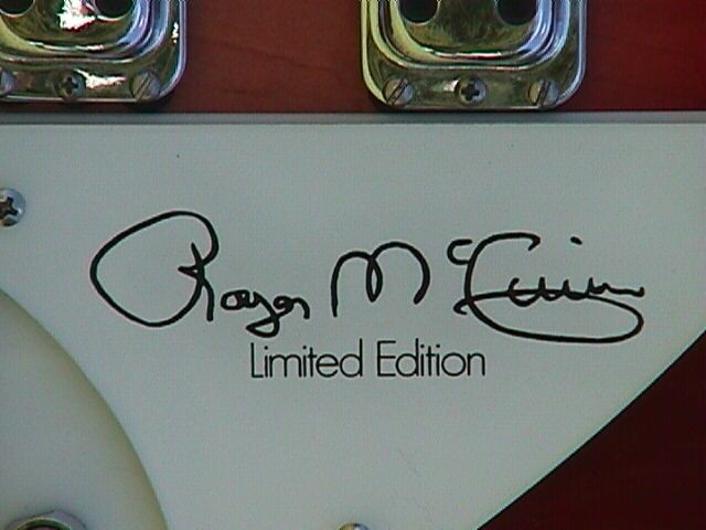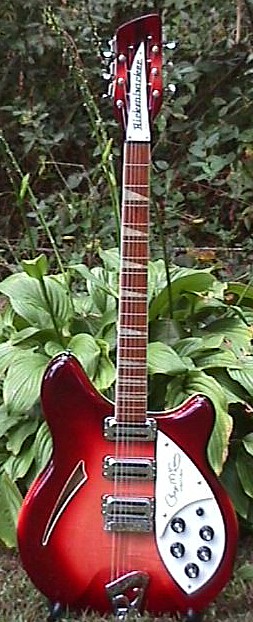 ![]() | 370/12 FG Roger McGuinn Signature Here at last! This fireglo all original beauty sports the on board compressor, checkered binding, 3 vintage pickups, R tailpiece, Rick logo case (black tolex/blue interior), great condition.... Check out the back! Certificate not included... supposed to be available from the factory, polish cloth, owners manual, waranty card in case. McGuinn signature pickguard, Serial #E2 7898 May, 1990. SOLD thanks CW! |