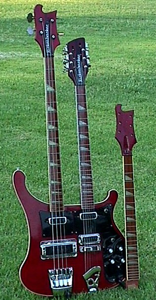| 4080/12/6 BG A rare Rick doubleneck in Burgandyglo finish from the first year of production. Came originally from the factory with the 12 string neck... 6 string neck was ordered a little later, so this one is 2 doublenecks in one.. your choice. Original hardshell case is a bit rough. Serial #OJ (no relation) 6498 (Oct '75) complete with both necks SOLD thanks GT! |