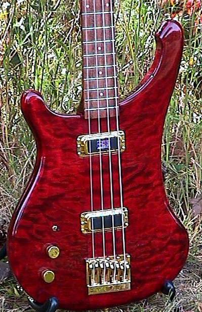 ![]() | 4003 Montezuma Brown Great new Monty Brown bass, one of our favorite finishes.. no longer available for new orders. Get one before they become collectable! body close up SOLD | ![]() | 650S Sierra Solid walnut body, humbuckers, gold parts, natural oil finish body close up | back close up SOLD |