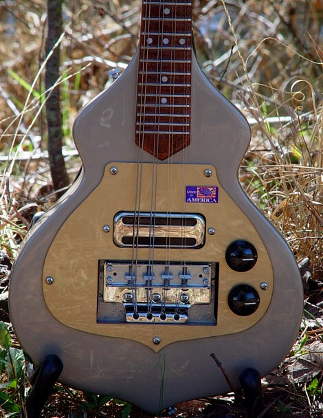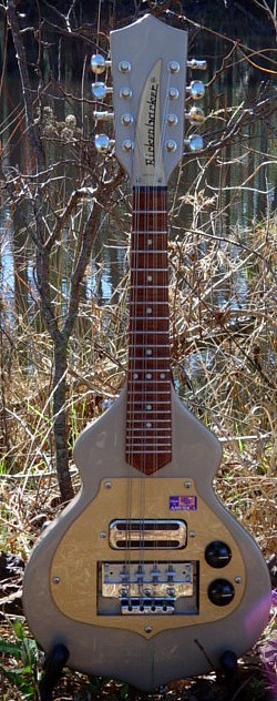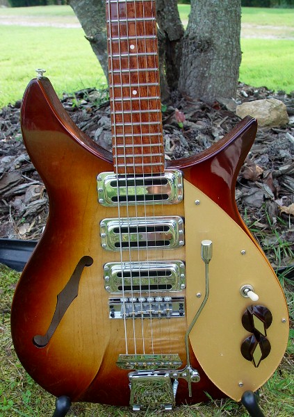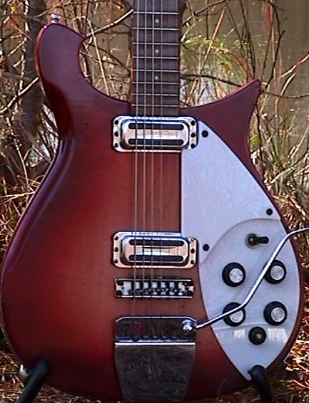 | Ryder 425 FG 1963 Funky...Electro String Instrument Corp/Radio-Tel originally sold to studios and dealers not carrying the full line of Rickenbackers. Serial #CJ 867. Full scale, toaster pickup in bridge position. Spent most of its time in the original cool brown tolex hardshell. $1395 SOLD |