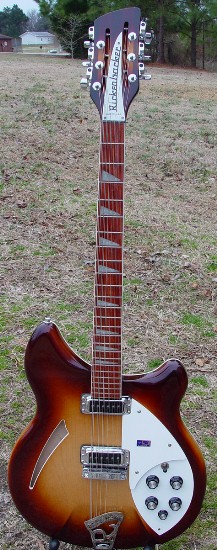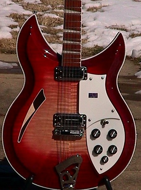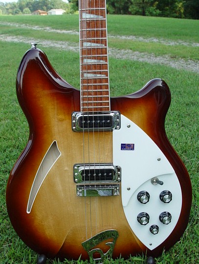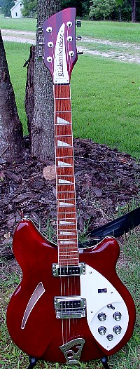 ![]() | 370/12 Blue Boy Here come the blue boys! Color of the year for 2004 and based on the Jim Reeves color from 1961.. 3 pickups, bound fingerboard, back and sound hole, stereo output. body close-up | back SOLD | ![]() | 360/12 Montezuma Brown Color of the year for 2003 and so popular it was extended for this year too! body close-up SOLD |