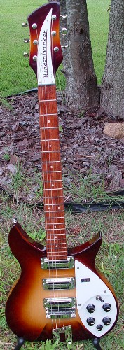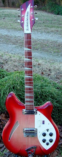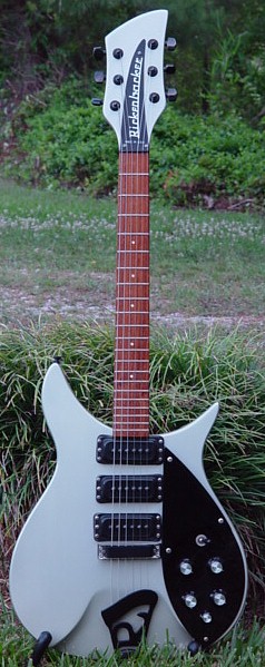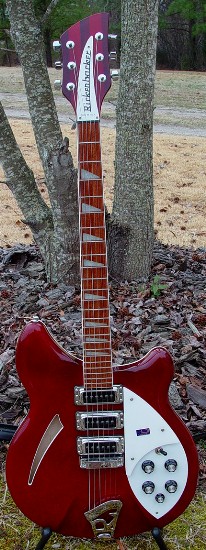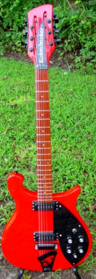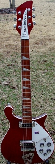 ![]() | 4003 Tuxedo It's the rare white fingerboard model, only a few made, some minor nicks and wear.. original tolex hardshell case, serial # CO 9473 (March 1987) $1495 body close-up | back SOLD | ![]() | 610/12 Red BT Great condition red 12 with black trim and hardware, serial # I6 6097 (September 1993), includes standard Ric hardshell case $995.SOLD |