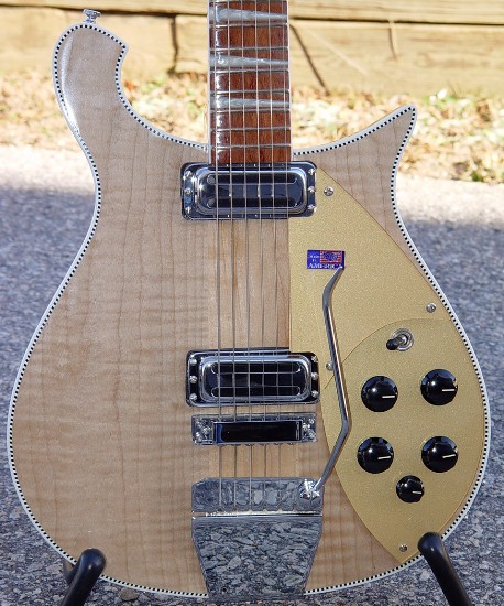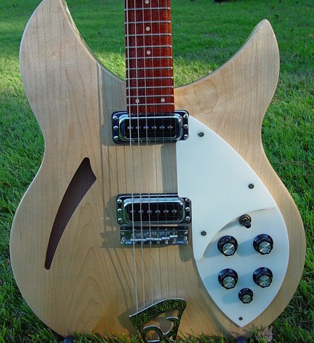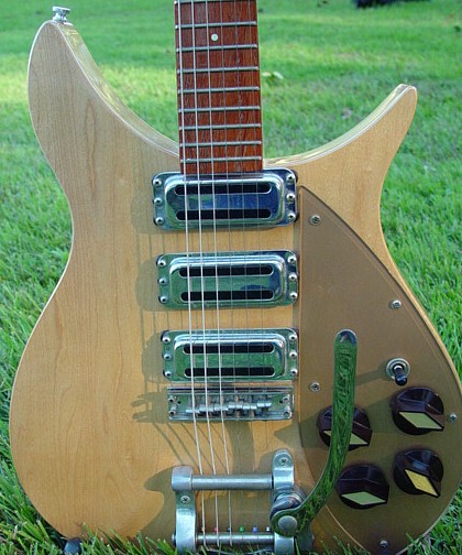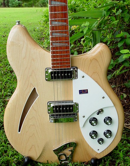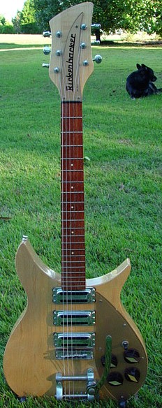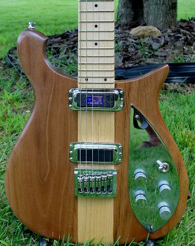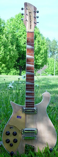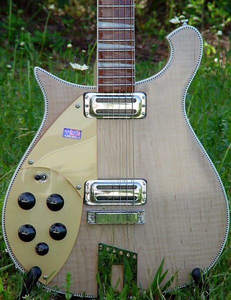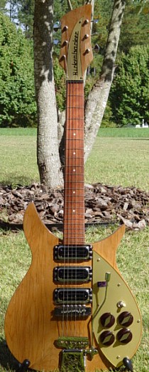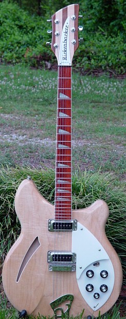 ![]() | 660 Mapleglo That cool wider necked solid body Rickenbacker body close up SOLD | ![]() | 650 Dakota Sweet walnut solid body, natural finish, RIC humbucker pickups. SOLD |