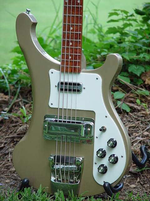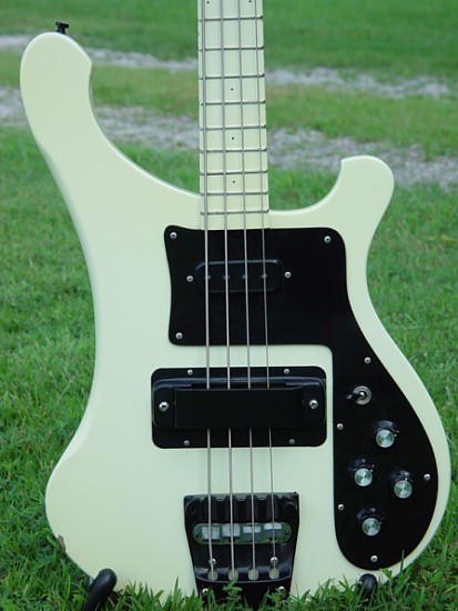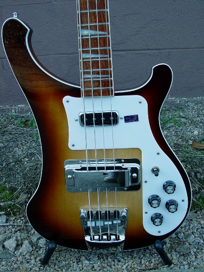 ![]() | 620 Desert Gold BT Black Trim Very rare desert gold finish with the now discontinued black trim and hardware..new, unplayed, in the original shipping carton.. $1495 body SOLD thanks PR! | ![]() | 4001 Chris Squire Signature Hard to find model.. this one is Serial #K4 4477, includes signature pickguard (some fracture flaws), came with standard white pickguard also, vintage silver case.. horseshoe bridge pickup, toaster neck, plays great and in very good condition... no certificate, $2295 back | pickguard SOLD thanks PT! |