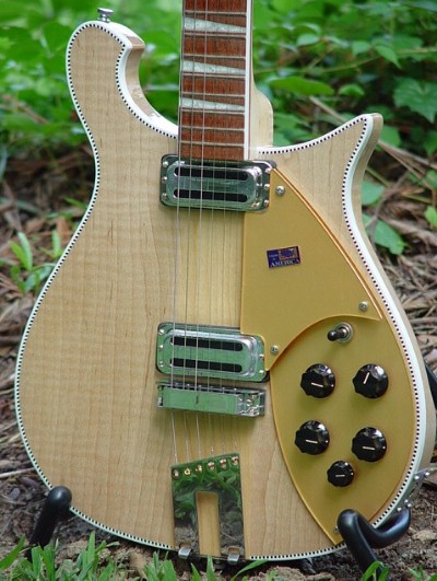 ![]() | 4001c64 Jetglo Hey... these were only supposed to be available in fireglo and mapleglo! Definitely a collectable item. Horseshoe and toaster pickups, nice feeling neck! body close-up SOLD thanks JT! | ![]() | 660 Mapleglo Left Hand Not found in your average guitar store.. wider-necked left hander, toaster pickups, checkered binding... body close-up SOLD thanks ST! |