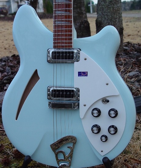 ![]() | 650 Dakota Dual humbucker Ric and Roller! body close up | back SOLD | ![]() | 381/12v69 Blue Boy How many of these do you see? What will it be worth in a few years? Top of the line 12 stringer in the now discontinued Blue Boy finish that was only available for 2004 body close up |