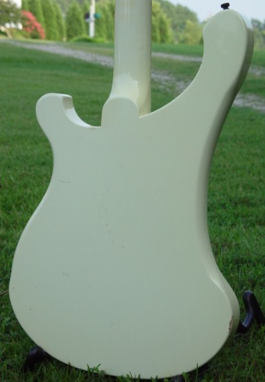 330/12 White Black Trim Cool aged white 12 stringer with black tolex hardshell case, some marks from hanging and couple of spots where white has turned darker, but a great player Serial # J4 4998 (Oct 1991) Back | Hanging spots $795 SOLD |