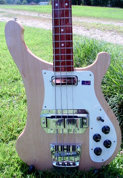![]() | 4003 Mapleglo Classic natural bass body close up SOLD | ![]() | 4001c64 Mapleglo Horseshoe bridge, toaster neck pickups, smoooth neck body close up SOLD |