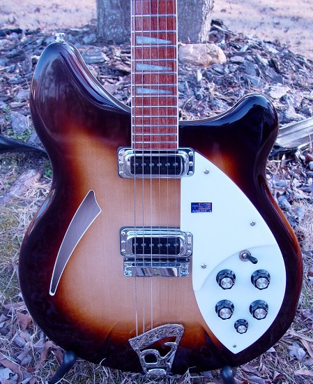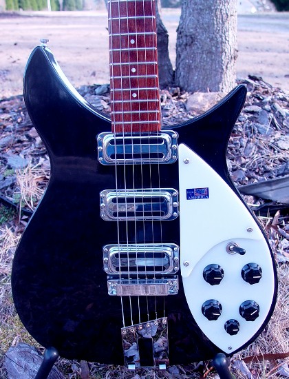 ![]() | 660/12 Fireglo Like almost all of our Ricks.. this one is new, unplayed, in the original shipping carton body close up Shipping blemish in transit from the factory.. call or email for special pricing SOLD | ![]() | 330 Jetglo Looks great in basic black SOLD |